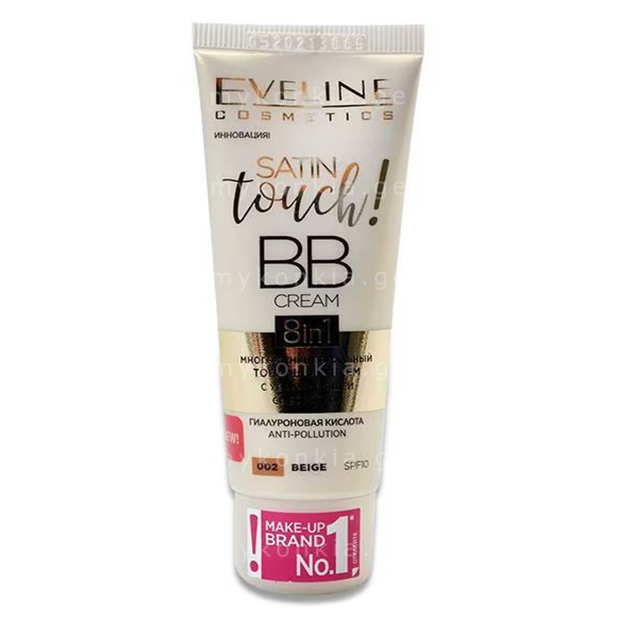 მრავალფუნქციური კრემი დამატენიანებელი შრატით - 002 BEIGE SATIN TOUCH BB CREAM 8 EVELINE