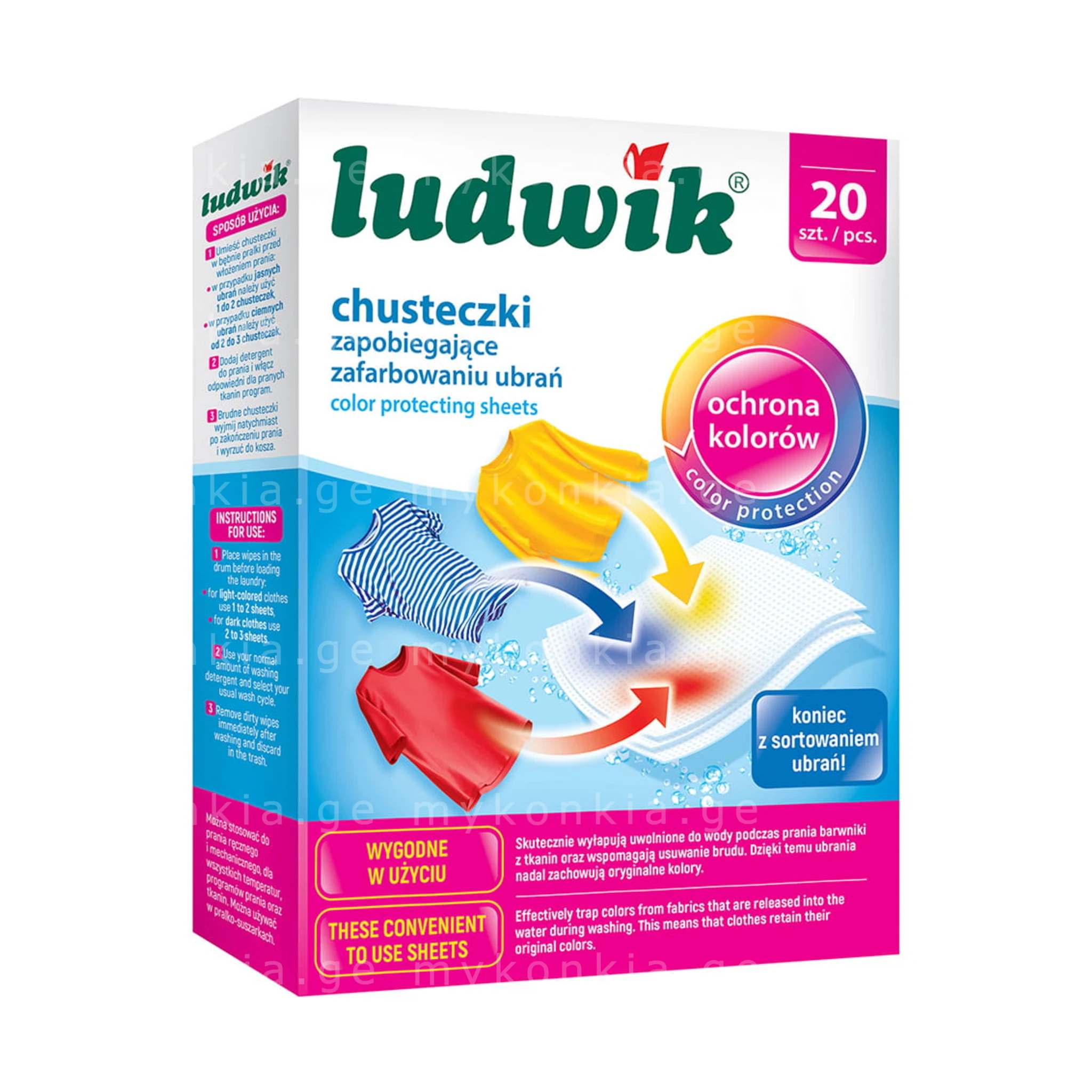 ტანსაცმლის შეღებვის საწინააღმდეგო ტილოები Ludwik Color catcher sheets 20pcs