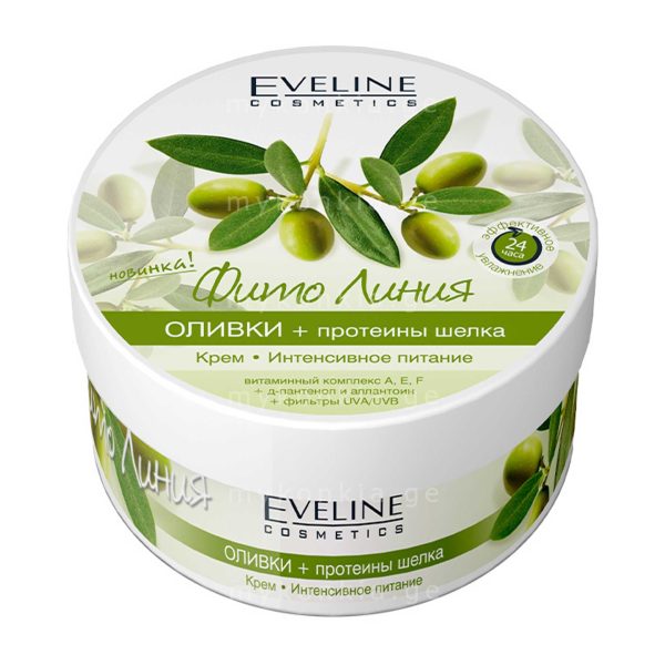 ფიტო ლინია: ზეთის ხილი+აბრეშუმის პროტეინები–კრემი კანის ინტენსიური კვებისათვის 210მლ EVELINE