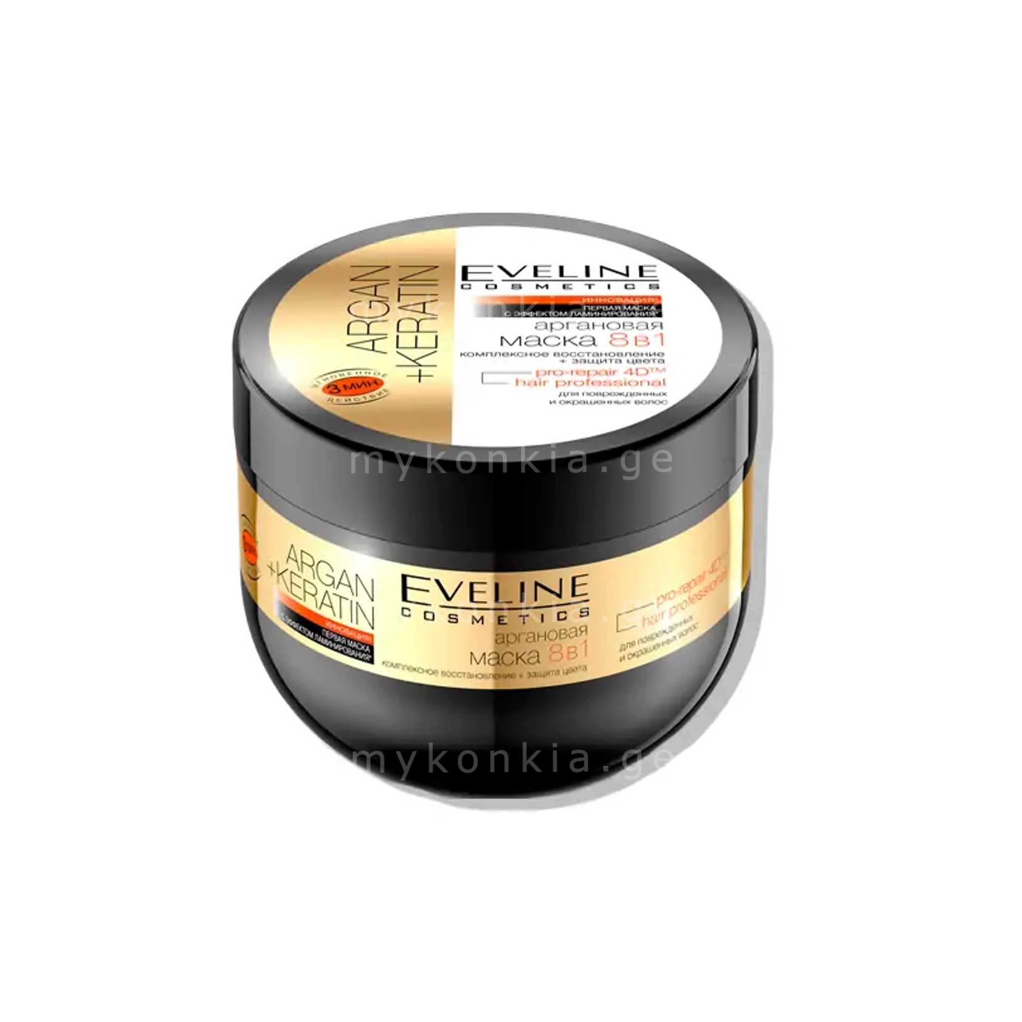 ARGAN+KERATIN: არგანის ნიღაბი 8/1-ში შეღებილი და დაზიანებული თმისათვის 500 მლ EVELINE