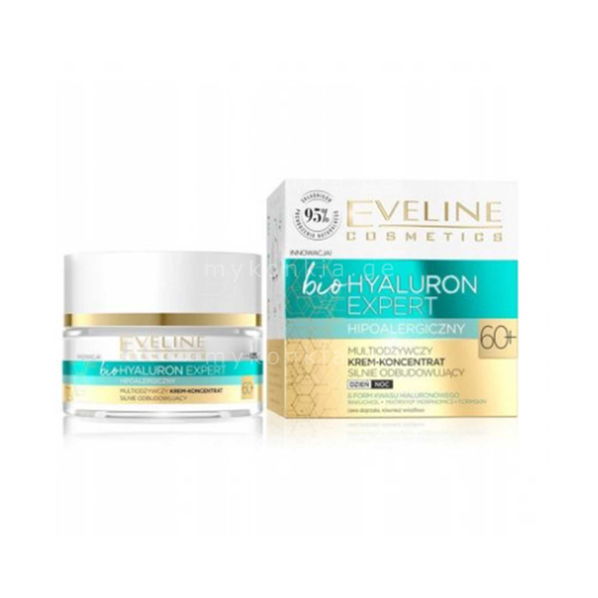 bioHYALURON EXPERT ჰიპოალერგიული, მულტიმკვებავი, აღმდგენი კრემ-კონცენტრატი 60+, დღე/ღამე, 50მლ EVELINE