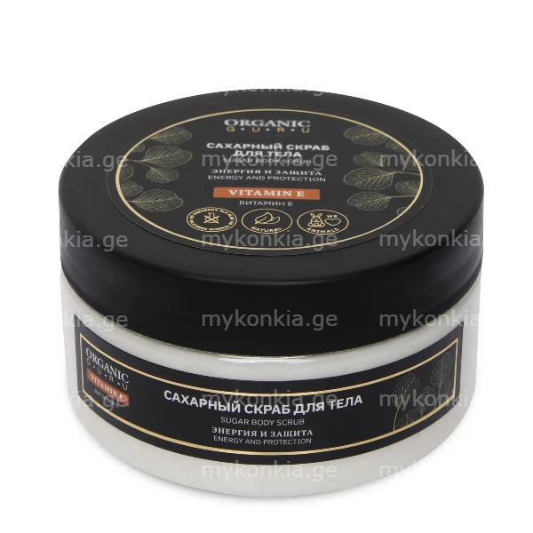 ORGANIC GURU შაქრის ტანის სკრაბი ვიტამინი E 200 მლ