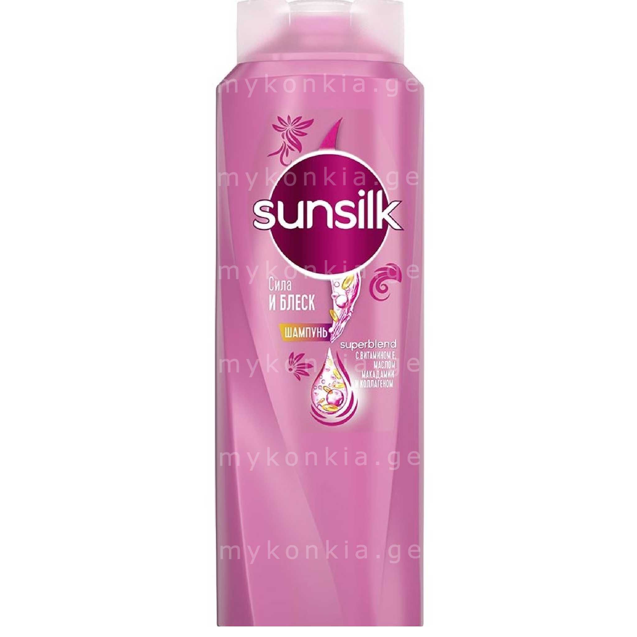 SUNSILK შამპუნი 350მლ ბზინვარება და სიძლიერე